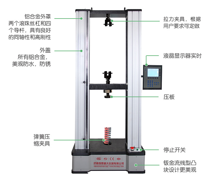 本機(jī)依據(jù)國家彈簧拉壓試驗(yàn)機(jī)標(biāo)準(zhǔn)規(guī)定的技術(shù)要求制成,專業(yè)設(shè)計的自動控制和數(shù)據(jù)采集系統(tǒng),實(shí)現(xiàn)了數(shù)據(jù)采集和控制過程的全數(shù)字化調(diào)整。能對拉簧、壓簧、碟簧、塔簧、板簧、卡簧、片彈簧、復(fù)合彈簧、氣彈簧、模具彈簧、異形彈簧等精密彈簧的拉力、壓力、位移、剛度等強(qiáng)度試驗(yàn)和分析。