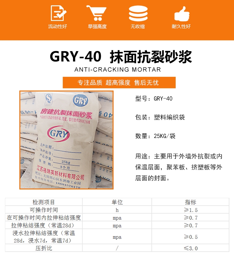 1)抗裂砂漿現場施工不需添加任何外加劑,嚴格控制水固比和抹灰時間。